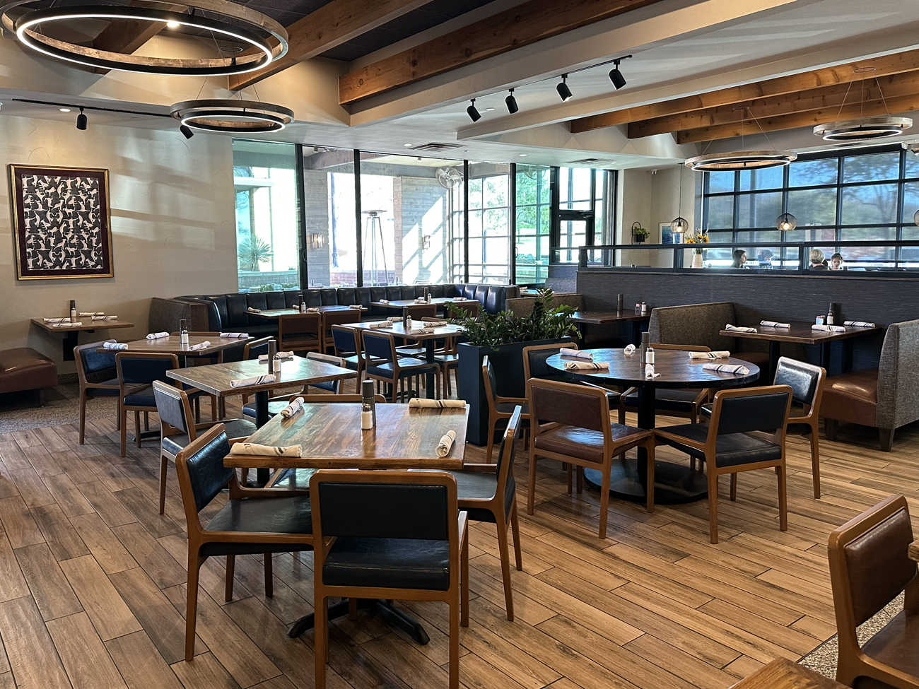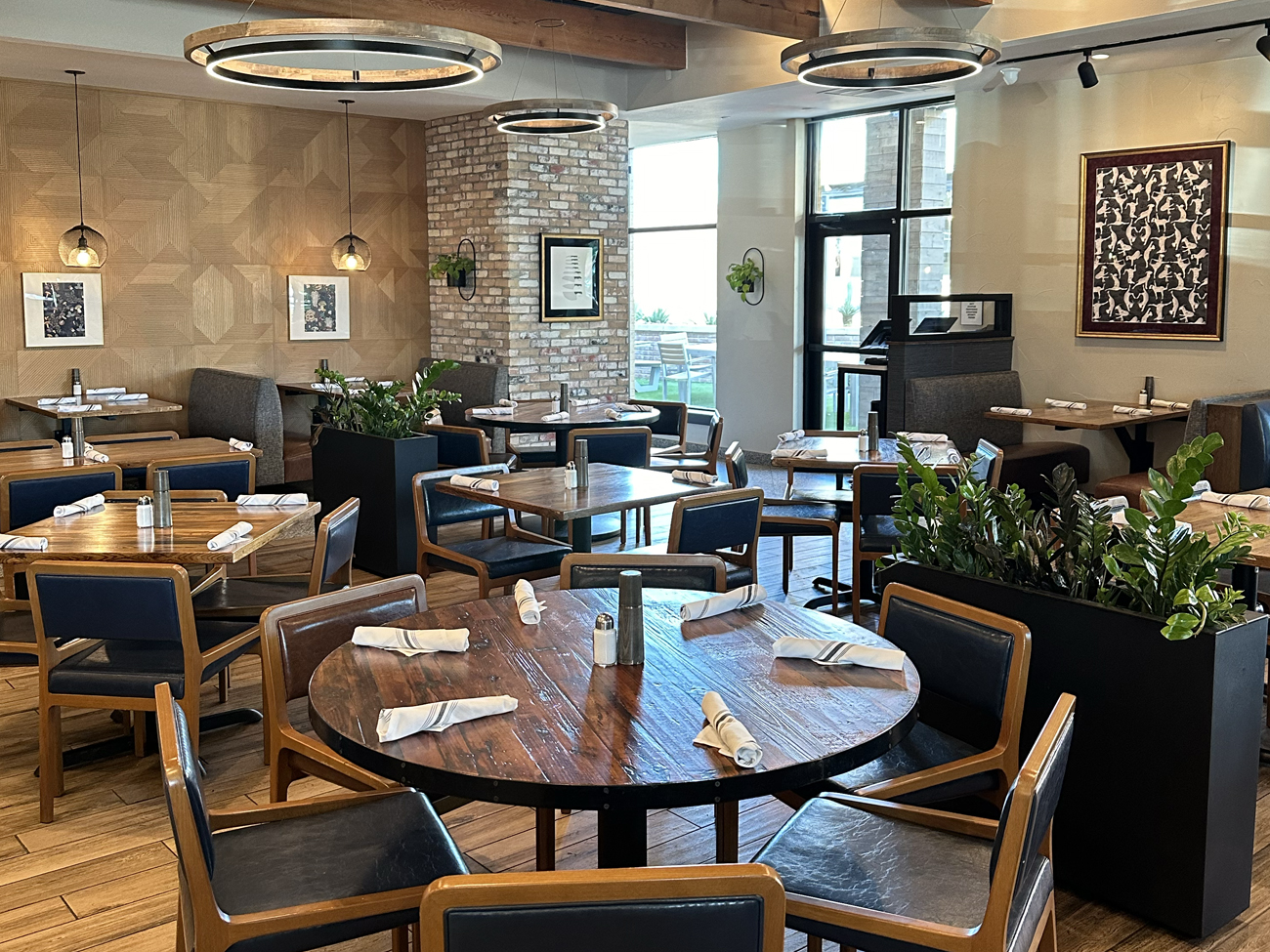 Cork & Pig Tavern blends rustic charm with modern sophistication to create a space that feels effortlessly elevated yet comfortably familiar. Warm wood tones, exposed brick, and metal accents are paired with soft, intentional lighting to set a welcoming tone. The bar serves as the vibrant centerpiece—crafted with rich detail and designed for connection—anchoring a dining experience that balances casual comfort with refined style.
