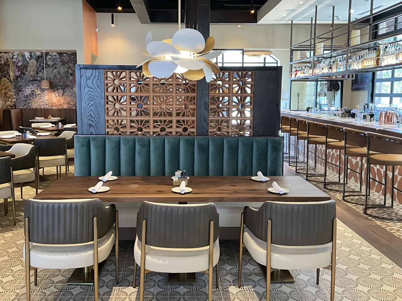 The West Texas outpost of a beloved Fort Worth restaurant, Maria’s Mexican Kitchen brings vibrant warmth and modern comfort together. Rich terra cotta tones, deep greens, and shades of violet are balanced with neutral hues, breeze block details, and custom brass accents. Thoughtful lighting and bespoke furnishings add depth and charm, while the indoor-outdoor bar invites a lively, social energy in a space that feels both elevated and welcoming.